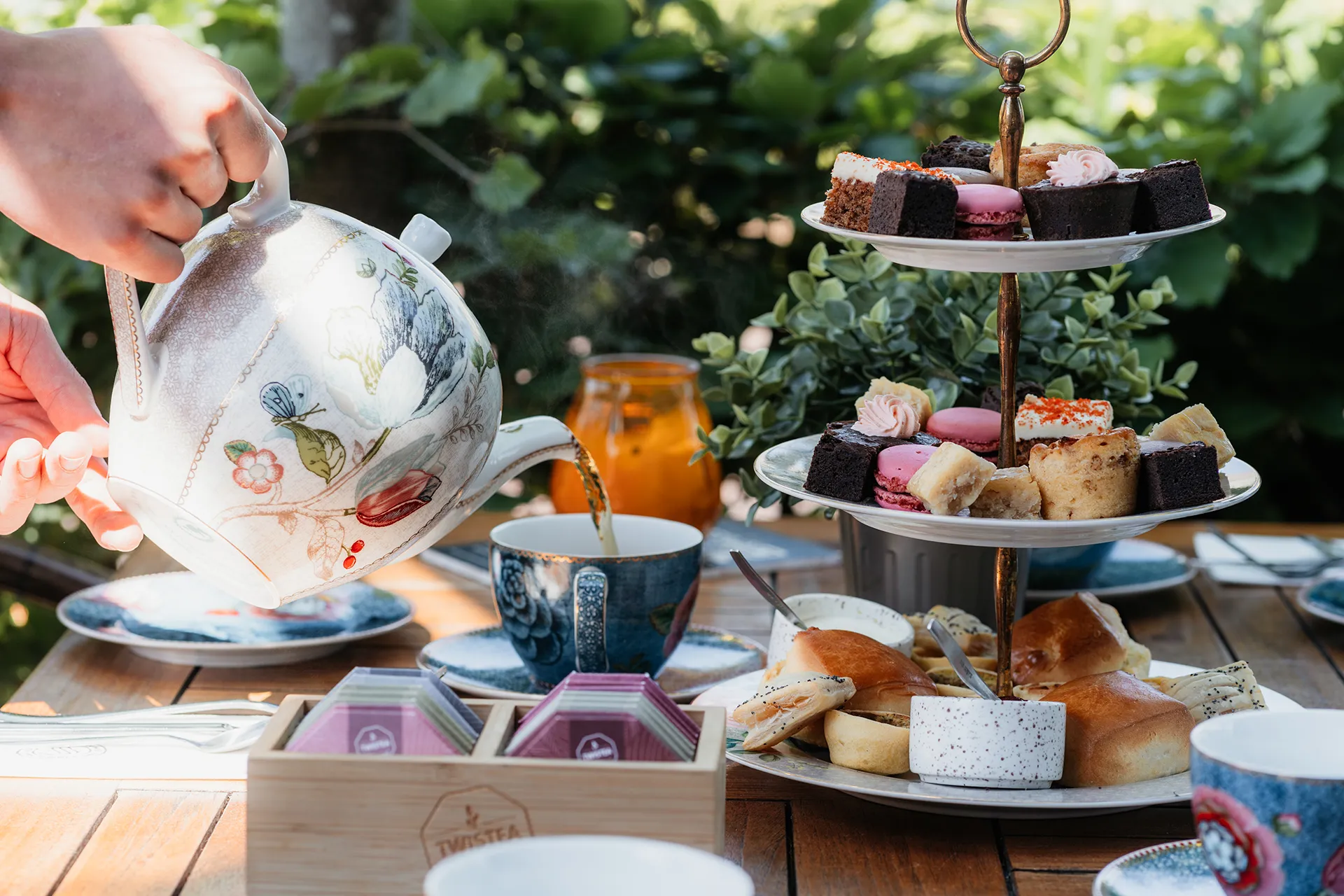 Geniet van een uitgebreide High Tea met verse jus, onbeperkt thee, soep, luxe broodjes, hartige gerechtjes en diverse zoetigheden, ideaal om samen uitgebreid te tafelen.